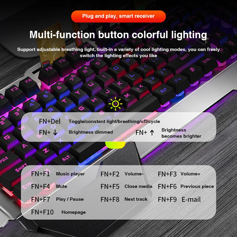 Wireless Gaming Keyboard Mouse and Large RGB Mouse Pad removeRecharging Wireless Gaming Mechanical Keyboard with Wireless Mouse remove