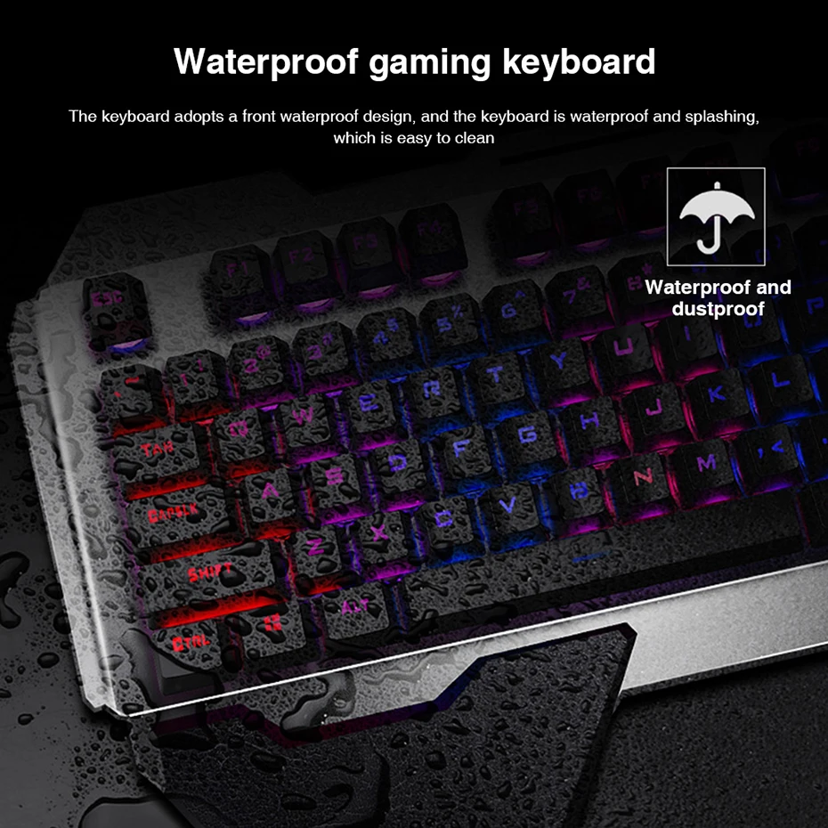 • This wired rainbow backlit gaming keyboard has 16 kinds of backlight effects, removable hand rests, floating keycaps, a brushed aluminum alloy panel, and ABS keycap materials which make the keyboard very durable.